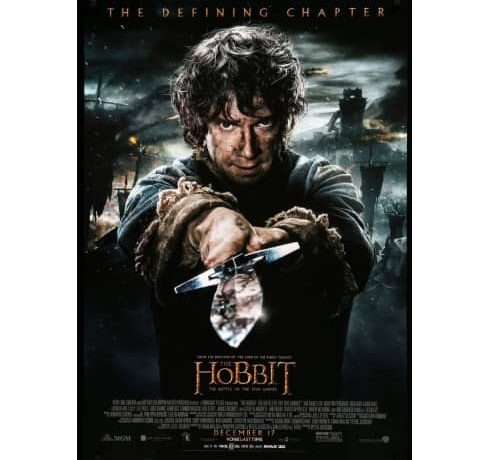 El director Peter Jackson culmina el ciclo de El hobbit con esta tercera parte que se centrará en el final de las aventuras del pequeño Bilbo Bolson y su regreso a Bolsón Cerrado, su hogar. Después de enfrentarse con el dragón Smaug y de obtener el famoso anillo de poder de las garras del siniestro Gollum, Thorin sacrifica su amistad y honor para protegerlo. Incapaz de ayudar a su amigo a entrar en razón, Bilbo se ve obligado a tomar una peligrosa decisión sin conocer aún los obstáculos que le esperan por delante. Sauron, “el señor oscuro”, ha vuelto a la Tierra Media junto a legiones de orcos para atacar sigilosamente la Montaña Solitaria. A medida que la oscuridad crece, los enanos, elfos y hombres deben decidir entre juntarse para derrotar a un enemigo común o ser destruidos. Bilbo se encuentra luchando por su propia vida y la de sus compañeros.