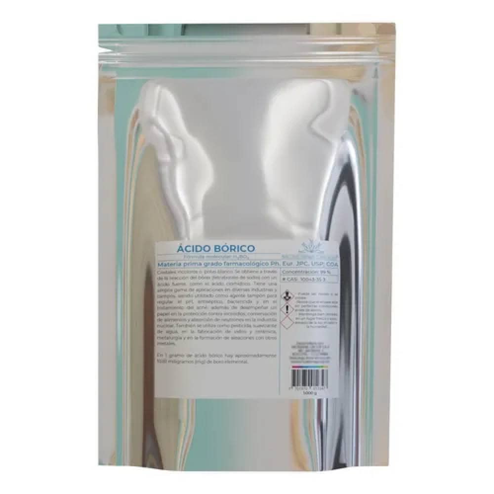 Descripción: El ácido bórico es un mineral o compuesto químico. Se puede encontrar en la naturaleza como en las plantas, el agua de mar, etc. Posee amplias propiedades que lo hacen útil en muchísimos campos. Se puede decir que puede ser utilizado como veneno para plagas, al mismo tiempo para beneficiar la salud de la piel y tratar variadas afecciones, pues es un poderoso antiséptico.